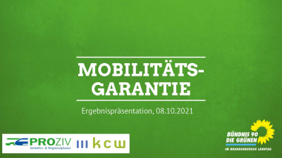 "Die Fraktion BÜNDNIS 90/DIE GRÜNEN stellt heute im Landtag ein Gutachten zu einer Mobilitätsgarantie für das Land Brandenburg vor. Sie hatte untersuchen lassen, wie es sich organisieren ließe, allen Brandenburger*innen in der Woche zwischen 5 und 22 Uhr mindestens stündlich eine Möglichkeit zu bieten, in Bus oder Bahn einzusteigen – am Wochenende alle zwei Stunden. Die Studie stellt heraus, dass diese Mobilitätsgarantie mit Plus- und Taktbussen sowie fahrplan- und linienungebundenen Flächenrufbussen möglich wäre."